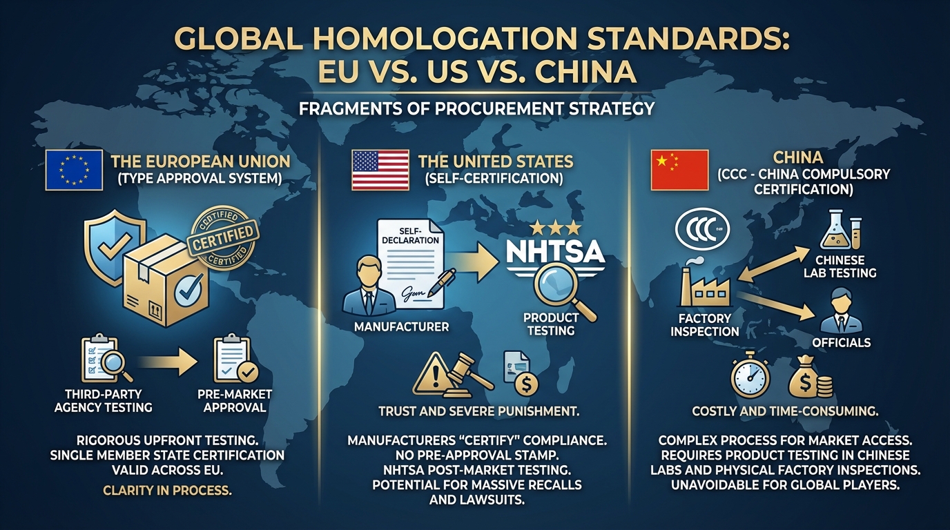One of the greatest challenges in homologation is the lack of a single global standard. The world is fragmented, and understanding these fragments is vital for procurement strategy.